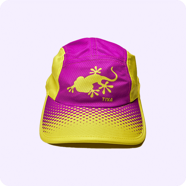 Boné amarelo e rosa